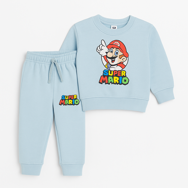 Dress your little one in style with this adorable Super Mario Baby Boys Blue Tracksuit. Made with soft and breathable fabric, this set includes a cozy sweatshirt and matching jogger pants, both featuring a fun Super Mario graphic print.